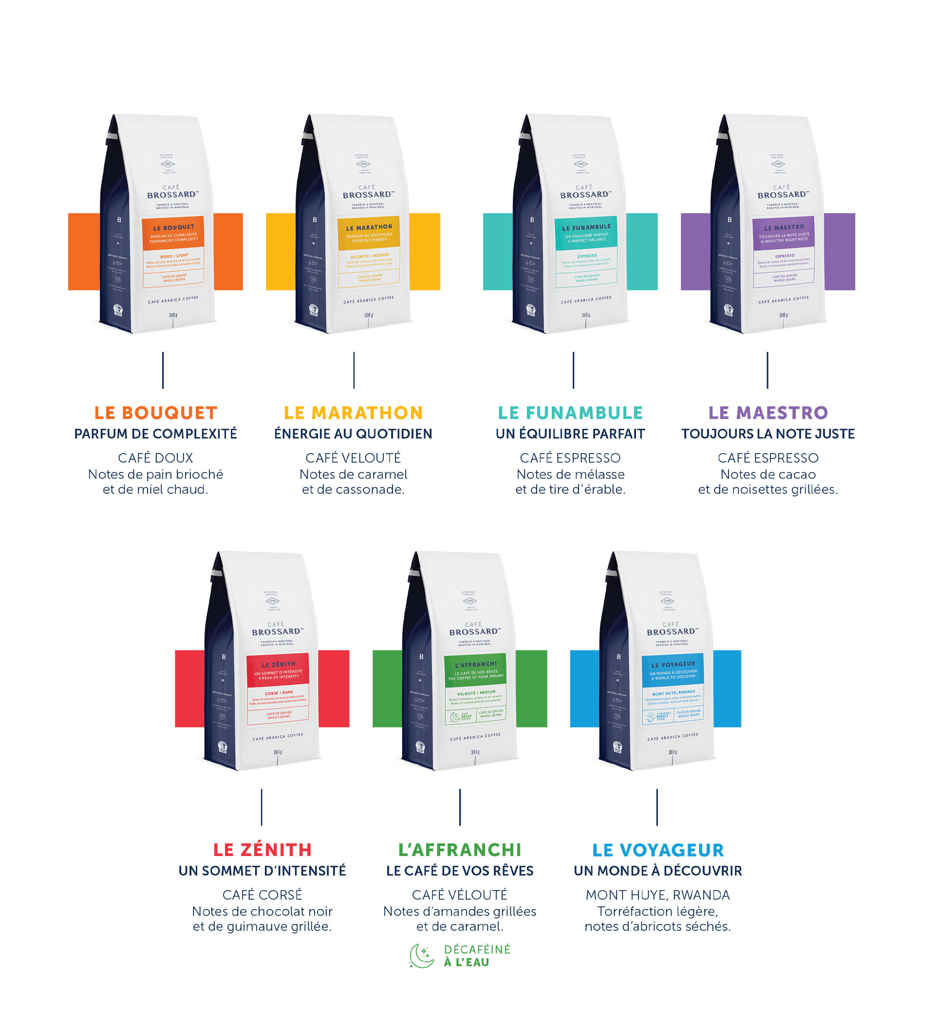 En modernisant l’image de la vénérable marque Café Brossard, c’est toute une famille que Gaspard Agence a su unir par une nouvelle identité graphique.