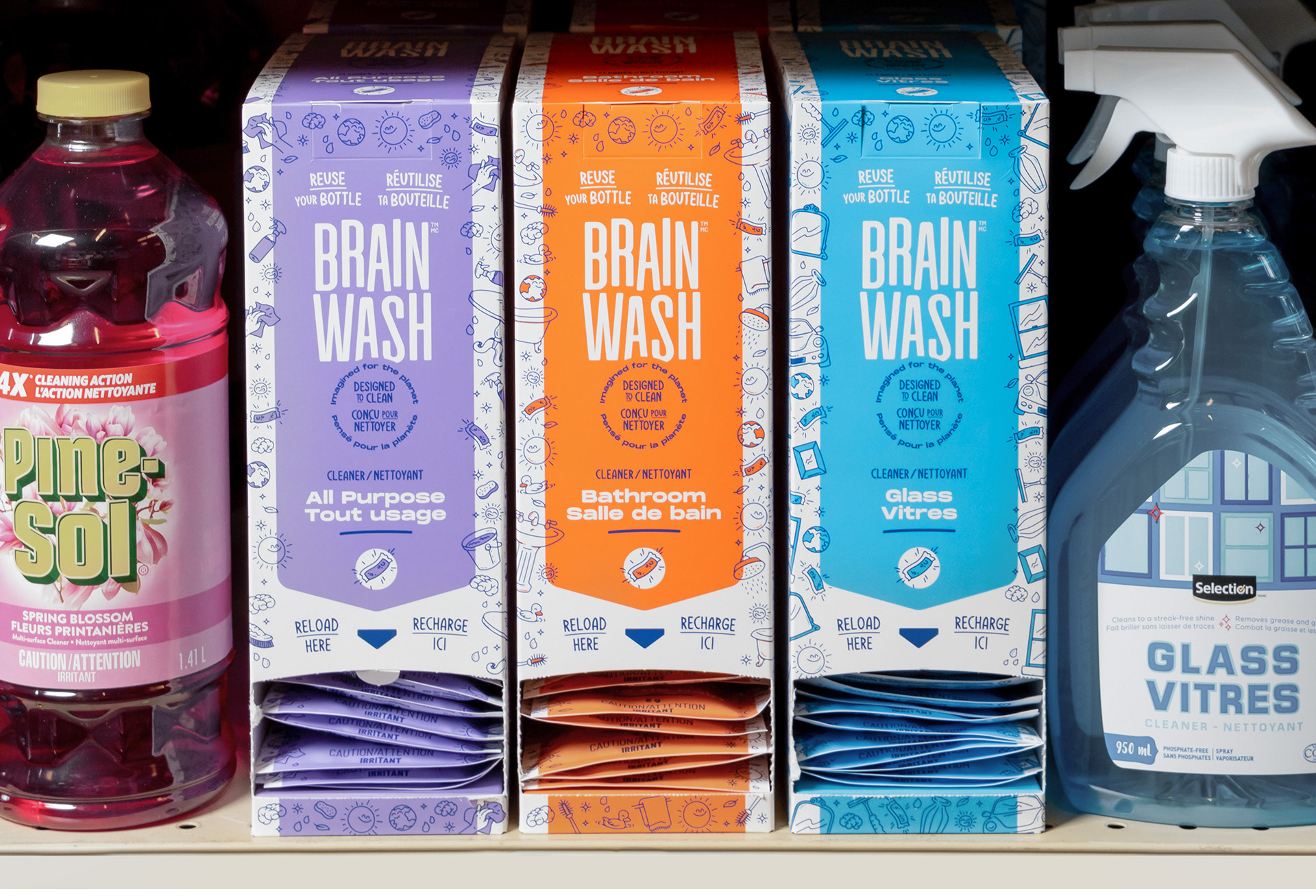 Gaspard Agence signe l’identité de marque de Brain Wash, une nouvelle gamme de produits nettoyants concentrés sous forme de capsule hydrosoluble. Il suffit d’ajouter de l’eau afin d’obtenir une solution nettoyante efficace. L’agence réalise une plateforme de marque complète: environnement graphique, messages, emballages et présentoirs. Les produits Brain Wash sont maintenant en vente dans toutes les épiceries Métro du Québec, ainsi que sur le site web brainwashsolutions.ca.