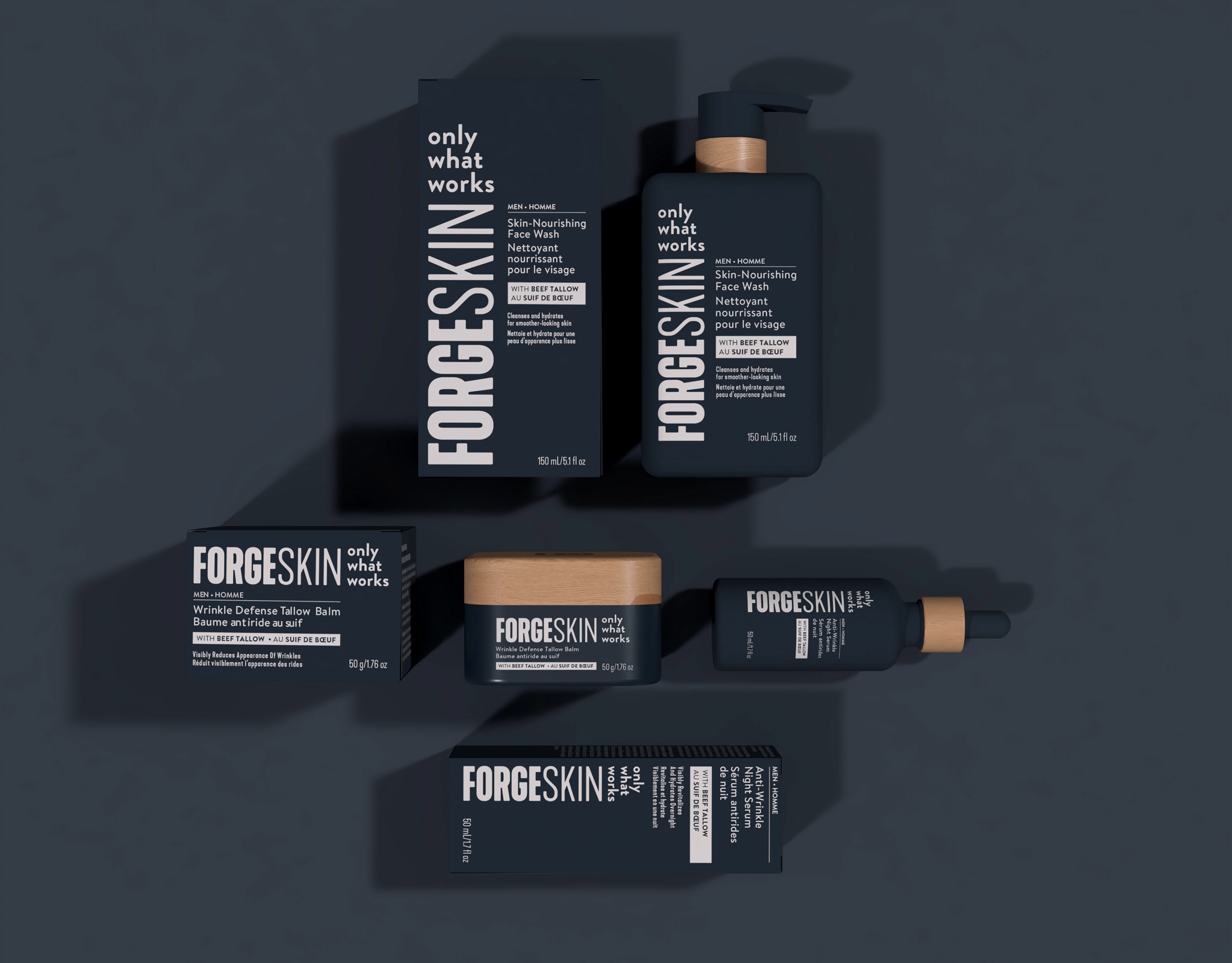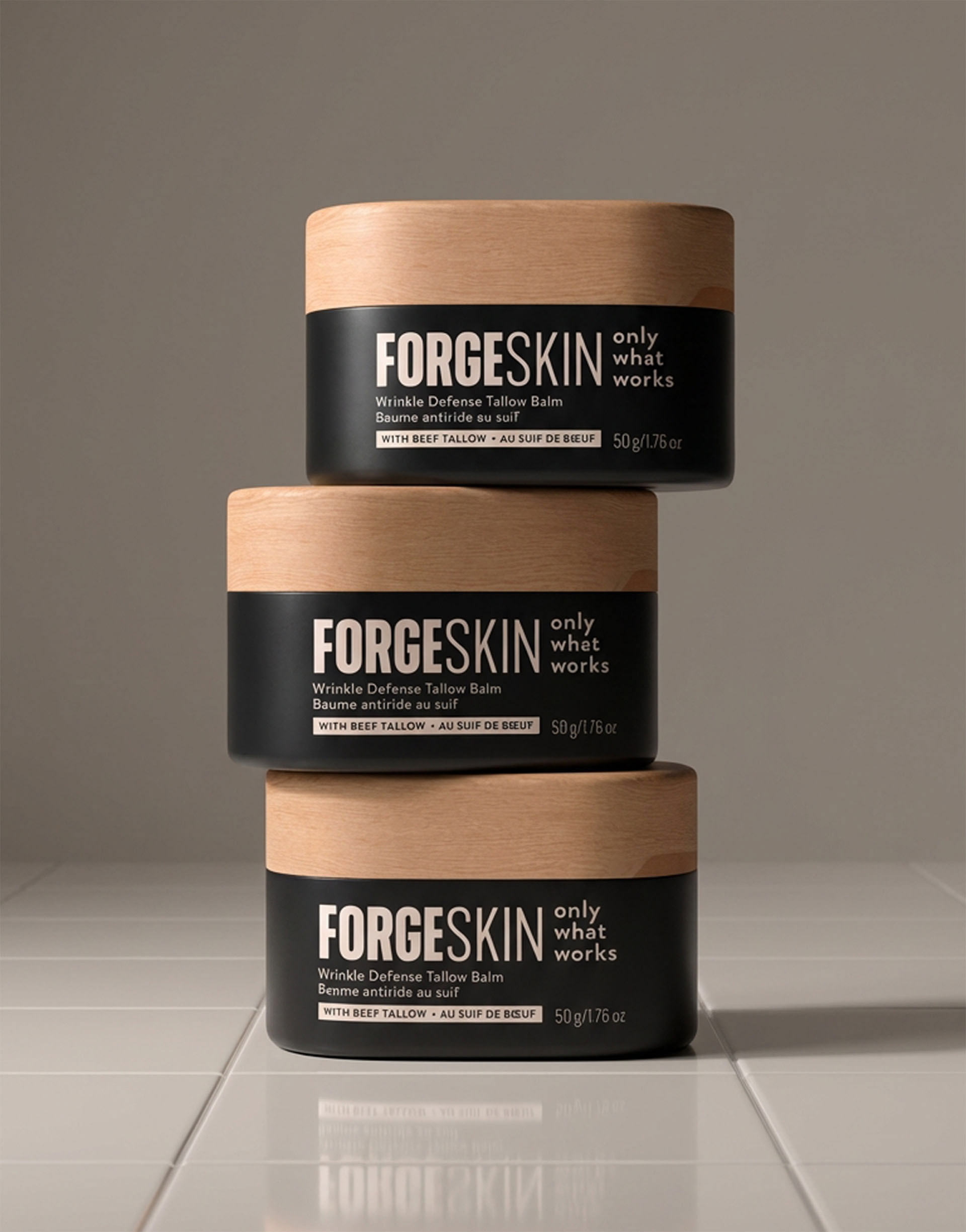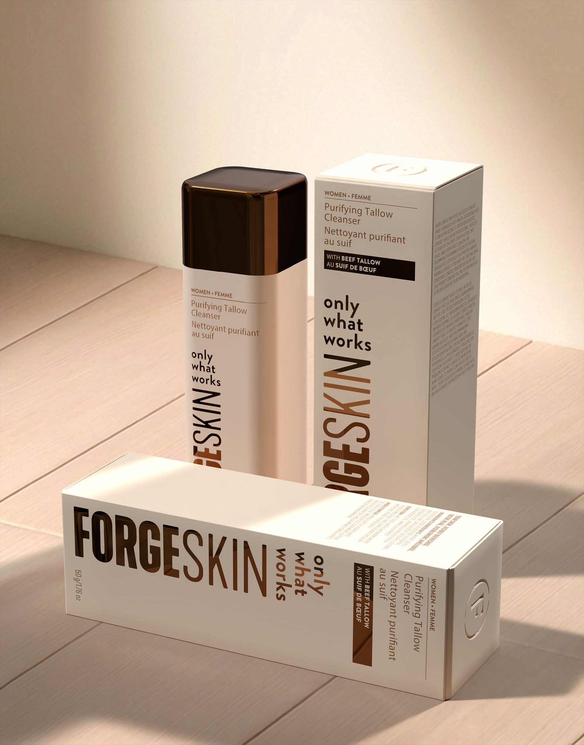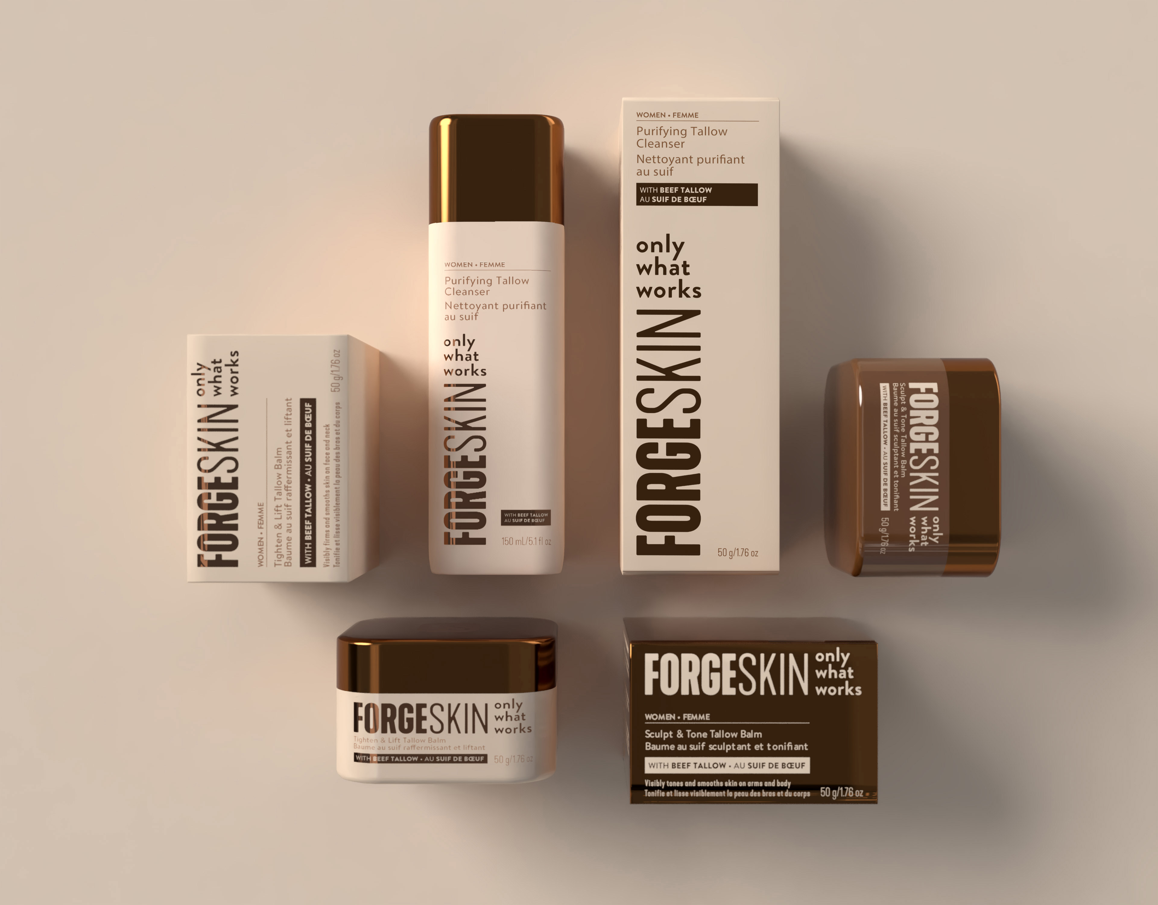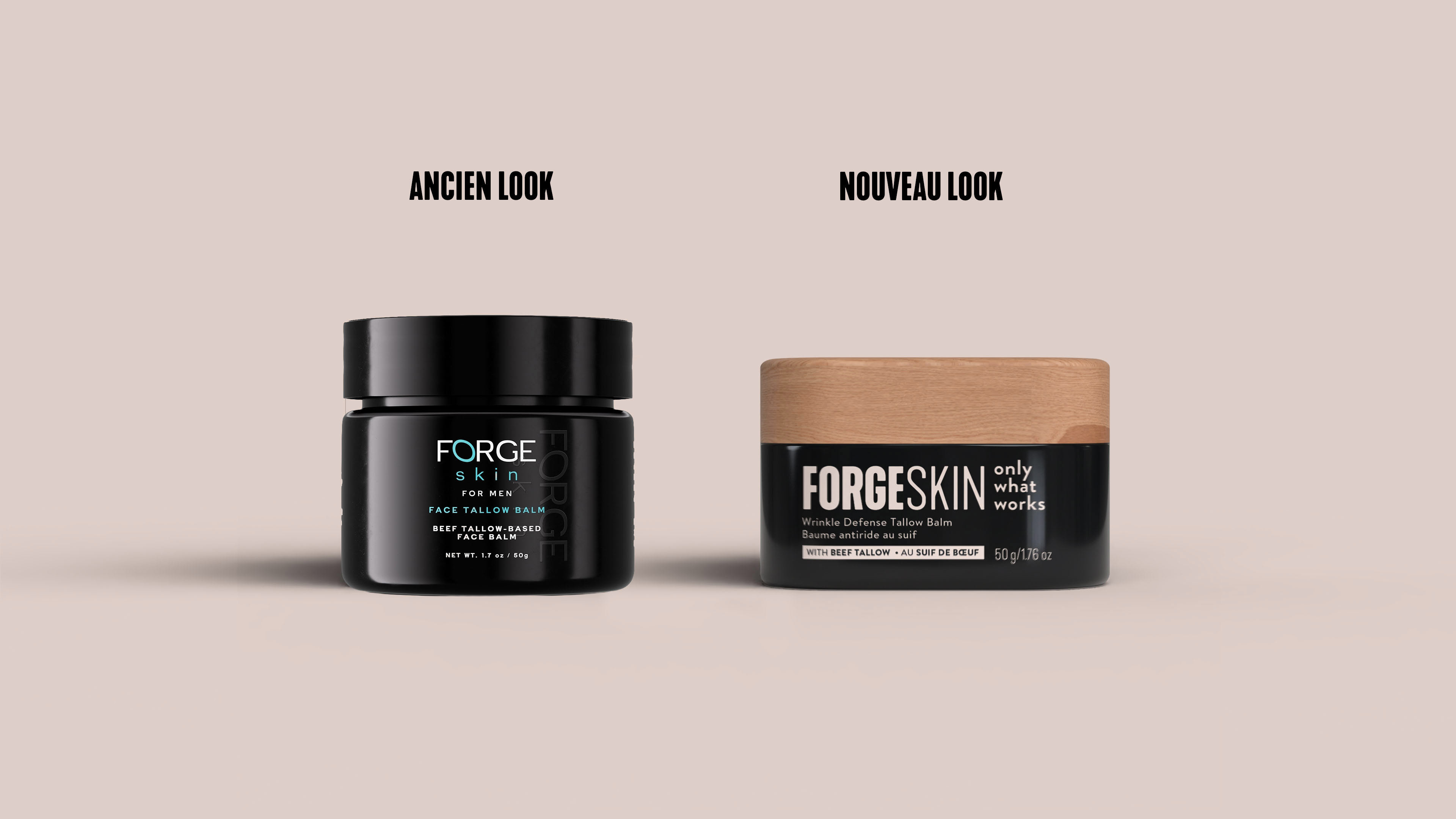 La transformation de Forge Skin a permis de poser les bases d’une marque forte, cohérente et durable. L’identité clarifiée et les emballages repensés offrent désormais une lecture simple et assumée du produit, tout en légitimant un ingrédient encore peu connu du grand public comme le beef tallow.