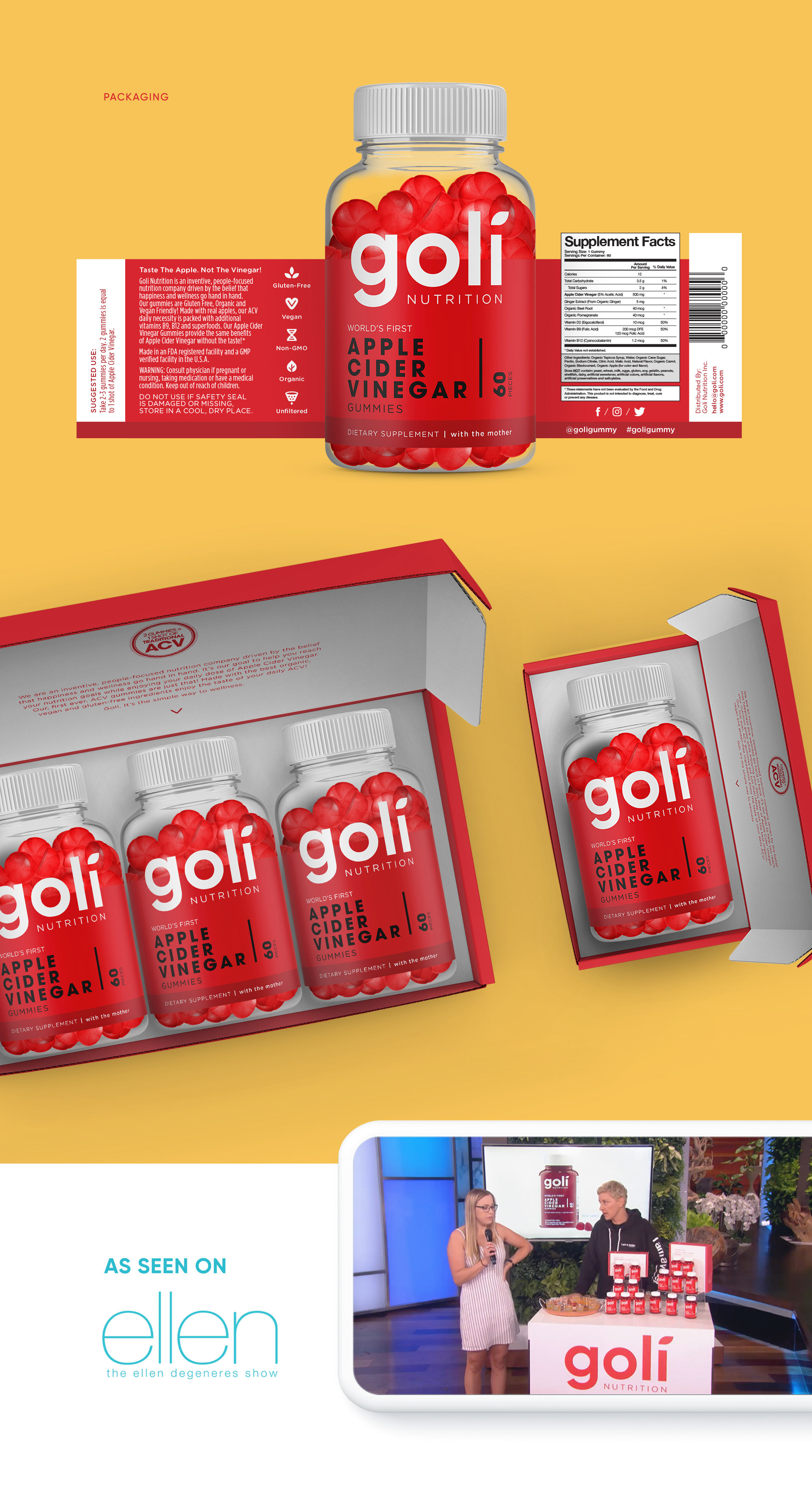 Aujourd’hui offert en ligne et distribué à grande échelle à travers les États-Unis et le Canada (Costco, Walmart, supermarchés Avril, boutiques Squish), Goli s’est rapidement taillé une place de choix dans le domaine des suppléments alimentaires et compte plus de 220 000 abonnés Instagram et un demi-million de mentions J’aime sur Facebook.