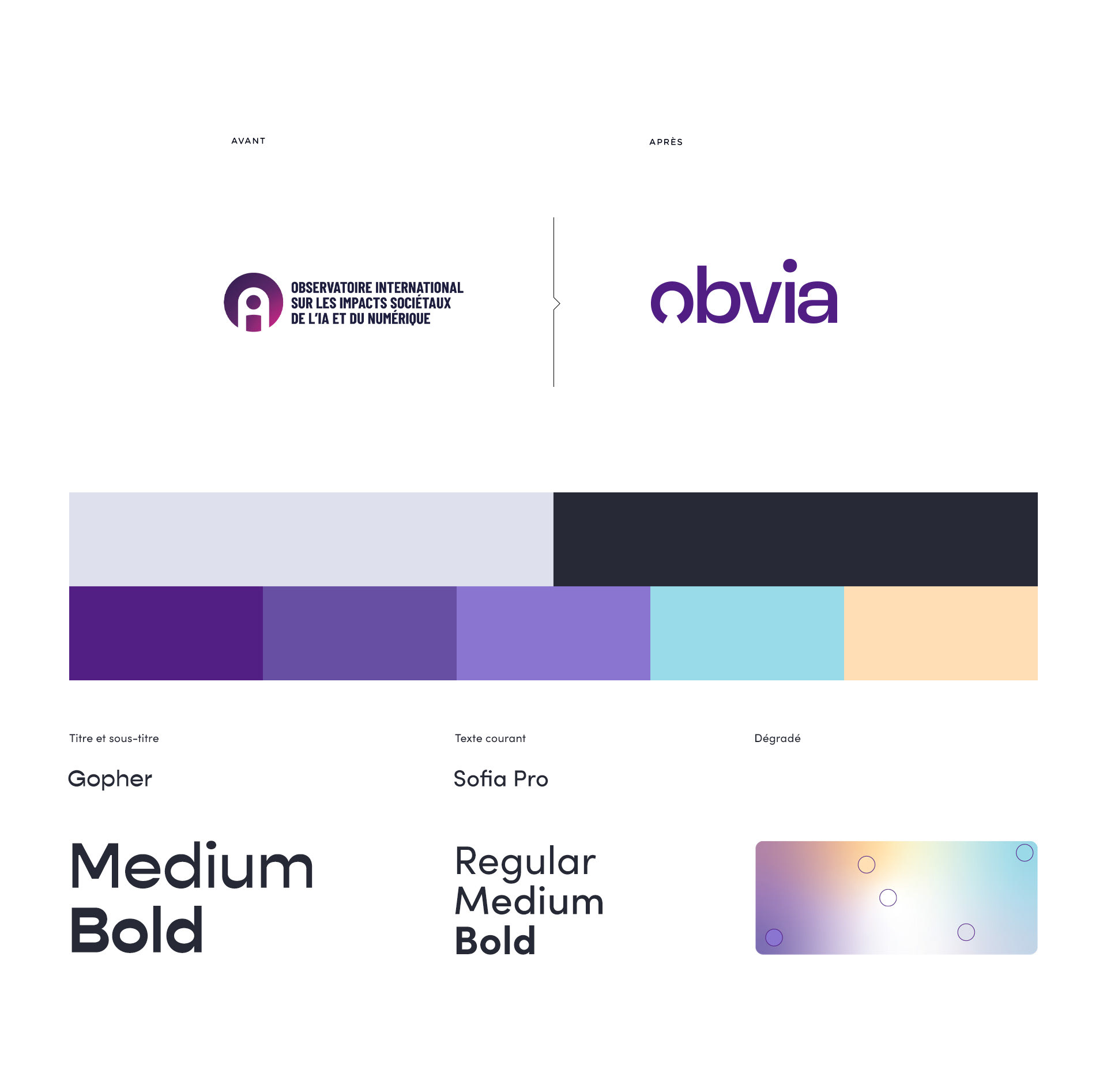 L'Observatoire sur les impacts sociétaux de l'IA et du numérique, aujourd’hui connu sous le nom d’OBVIA, a choisi Gaspard Agence pour l’évolution de sa marque. Ce projet de refonte de son identité visuelle – logo et environnement de marque – visait à résoudre des défis de communication, à rassembler la communauté de chercheurs et à renforcer le positionnement de l’OBVIA en tant qu’organisme institutionnel de référence sur les sujets de l’intelligence artificielle et du numérique, au Québec et à l’international.